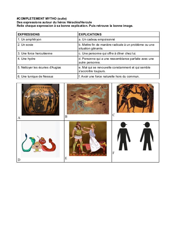 Associe l'expression mythologique (en majuscules) à sa signification (en minuscules).